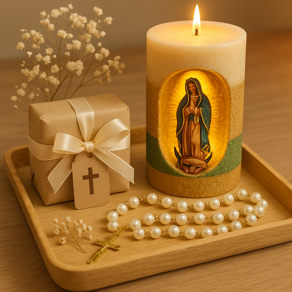 Imagina poder crear regalos con significado real: una vela devocional hecha por ti, acompañada de un rosario artesanal o un jabón bendecido por la intención. Cada pieza se convierte en un símbolo de luz, oración y cuidado, perfecta para ofrecer con fe o agradecer con amor.